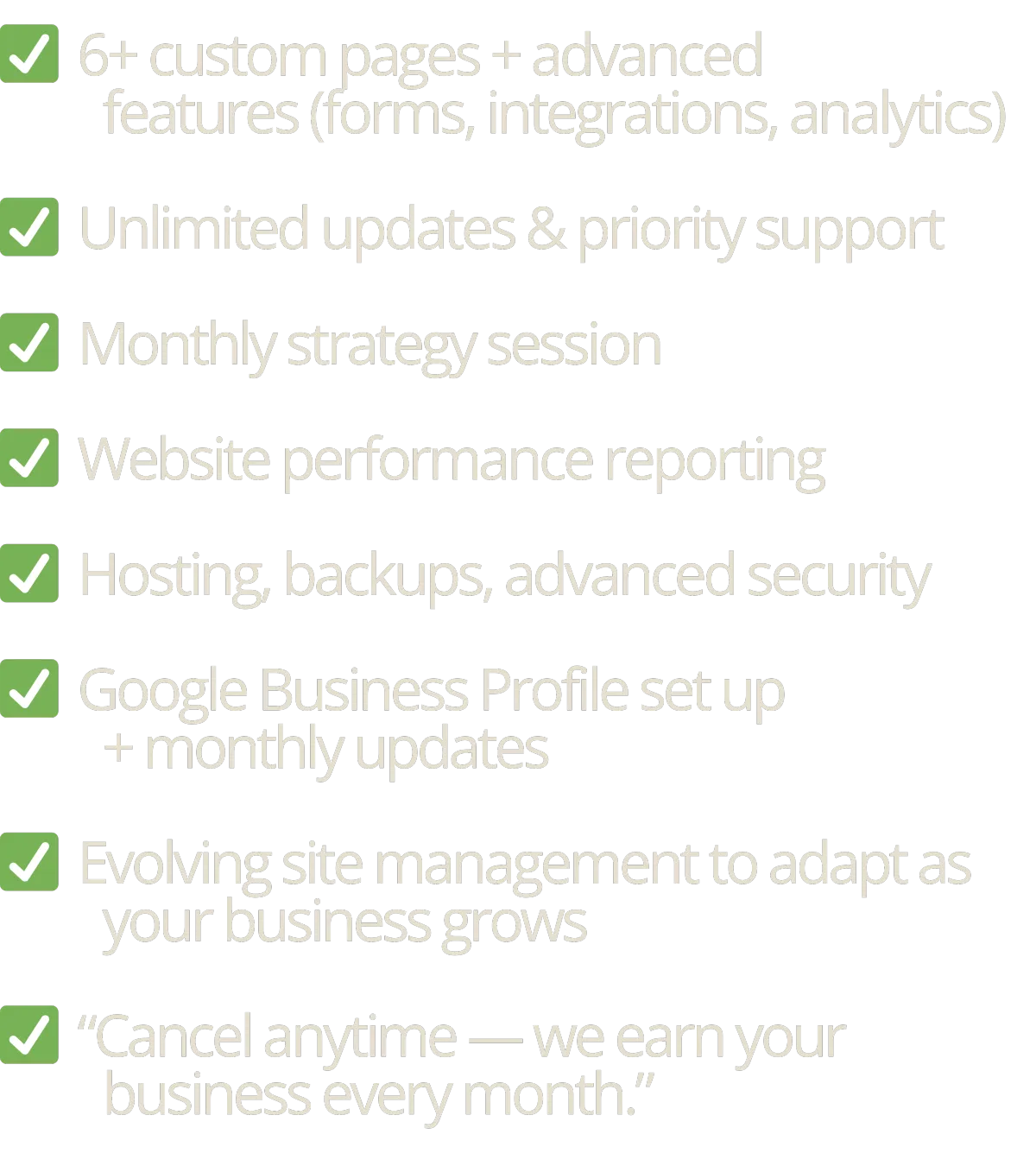 Most of our clients’ websites go live within 6 weeks of the initial intake call. Some website builds may take longer depending on the number and scope of revisions you request.